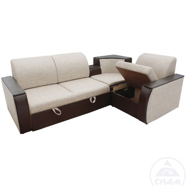 Механизм: венеция (дельфин) Размер: 2530×1800 Спальное место: 2000×1300 Наполнитель: ППУ Бельевой ящик: есть Угловой диван «Мартин» с механизмом трансформации Венеция (дельфин) — это классика углового дивана. Он снабжен мягкими и удобными спинками, что не позволит Вам чувствовать неудобство размещаясь на нем. Особенности Угловой диван «Мартин» имеет несколько ключевых особенностей. Одна из них — «трансформация угла дивана». Другими словами, Вы сами можете поменять угол дивана, что позволяет перемещать его по квартире, располагая именно так, как это Вам необходимо. Вторая особенность дивана — это возможность превращать мягкое угловое сиденье — в твердый, удобный столик, всего лишь перевернув его. Под другой частью сиденья находится ящик для белья. Диван изготовлен из плотной древесины, металлоконструкции (механизм), ЛДСП (подлокотники, столик) и пенополиуретана (наполнитель).